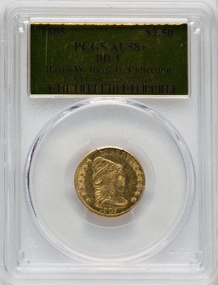 John Dannreuther makes the point that the “mintage figure for this year may be one of the firmest to date, as it is believed that all 1,781 coins delivered in 1805 were of that date… .” This was the only die pair used to strike those coins, and it was later employed in the production of 1806 BD-1 and BD-2 quarter eagles, 1807 BD-1 quarter eagles, and 1807 JR-1 dimes. The dual-denomination nature of the dies certainly adds to the appeal of this scarce issue. Only 100 to 150 pieces are thought to exist.